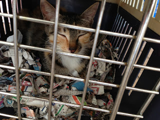 We knew that the kittens should be around... We brought my kittens in and PY helped me to catch the two new ones. We kept them in the cage Manda left for me...